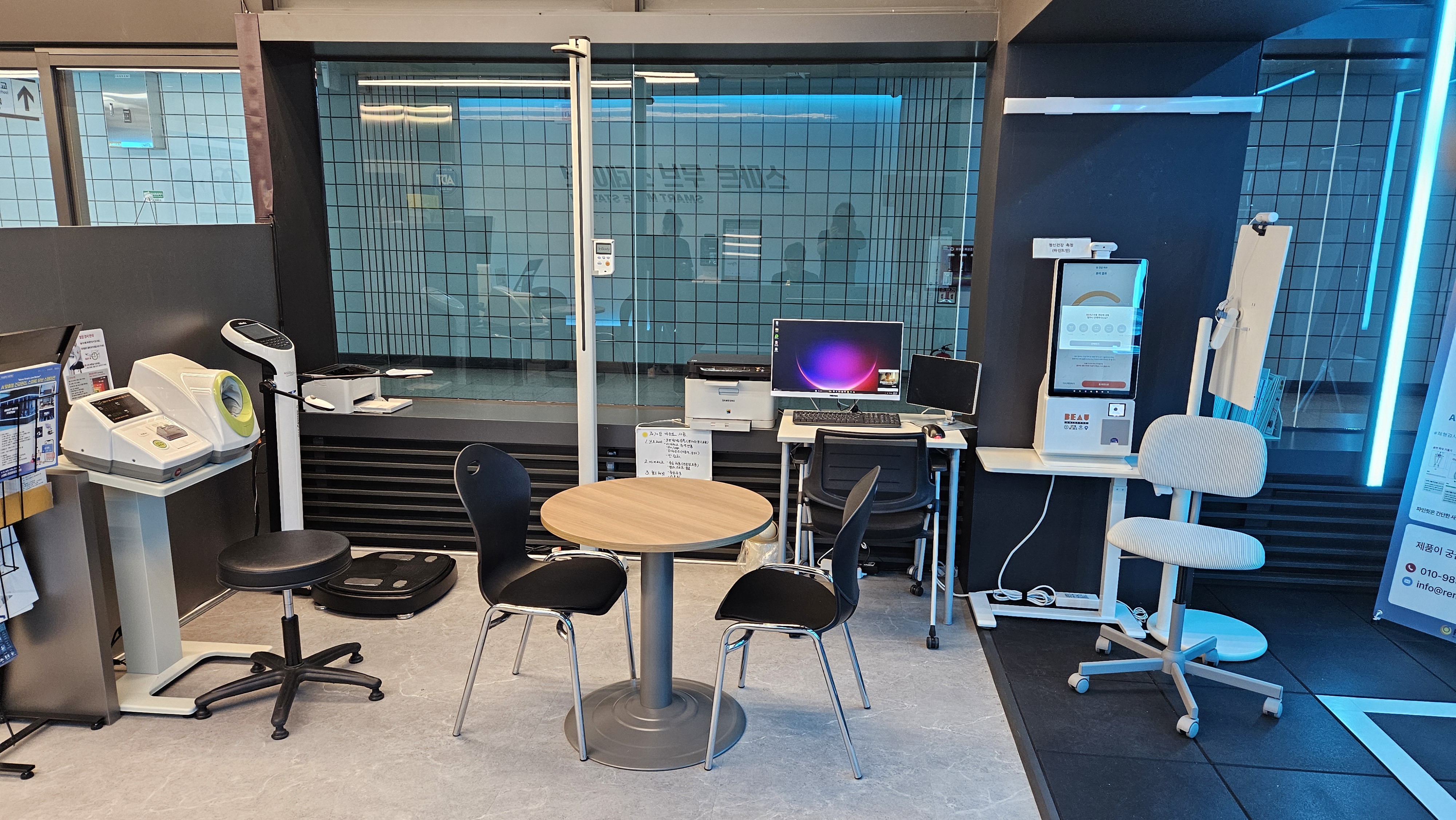 AI 기반 체질량/체형과 멘탈 등 개인별 운동체력측정과 맞춤형 디지털 근력운동을 한 번에 체험할 수 있는 스마트측정존 & 퍼스널핏 스튜디오입니다.