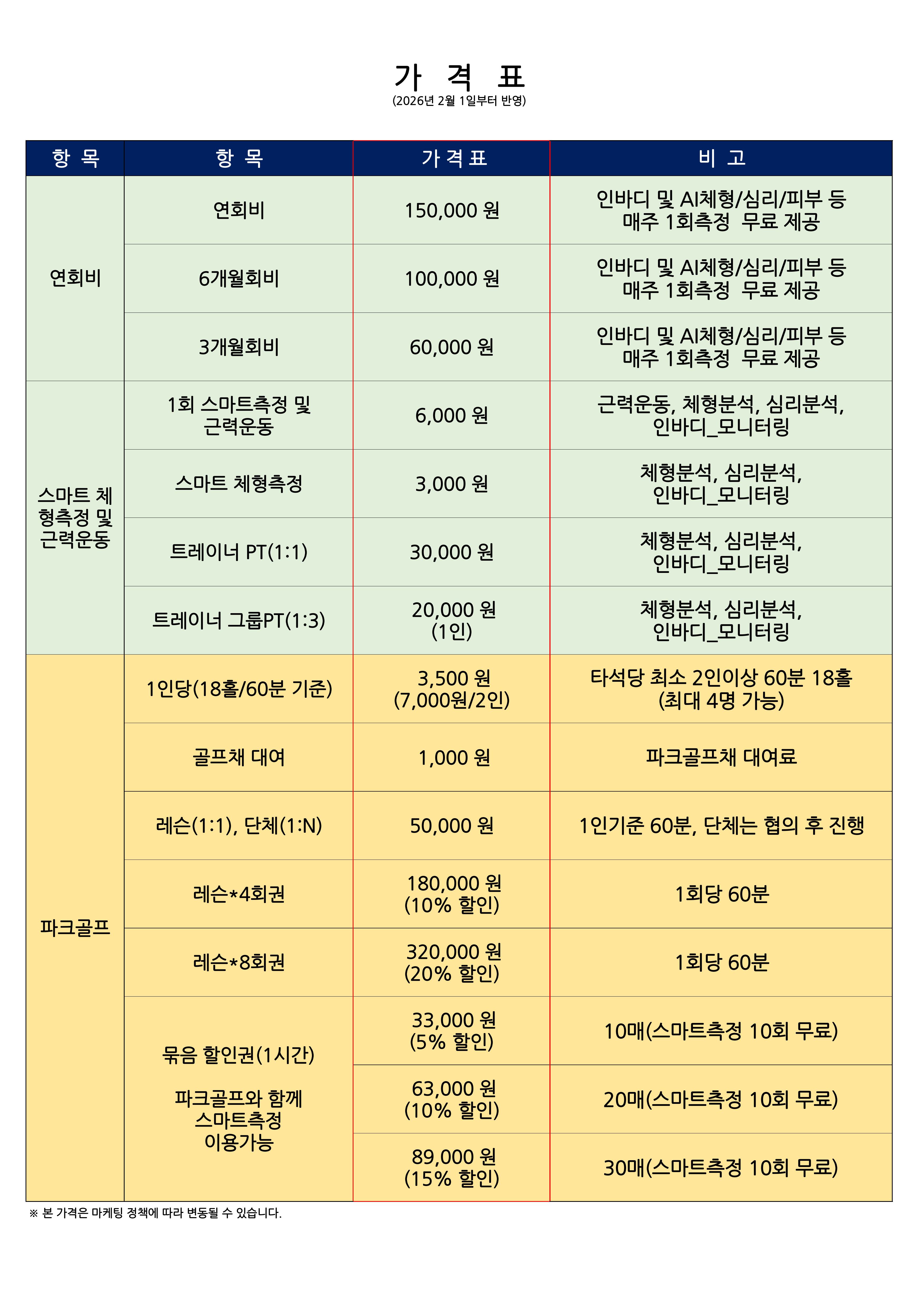 예약 안내 및 가격표